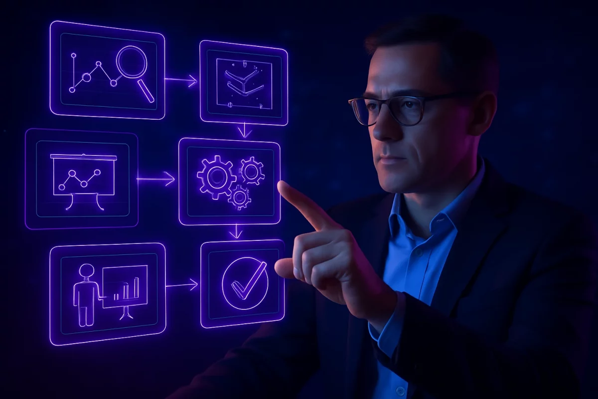 Our consultants analyze your engineering workflows, identifying repetitive tasks and bottlenecks that can be automated using our node-based solution. We map your existing tools (CAD, PLM, simulation software) and document specific processes that will benefit most from automation.